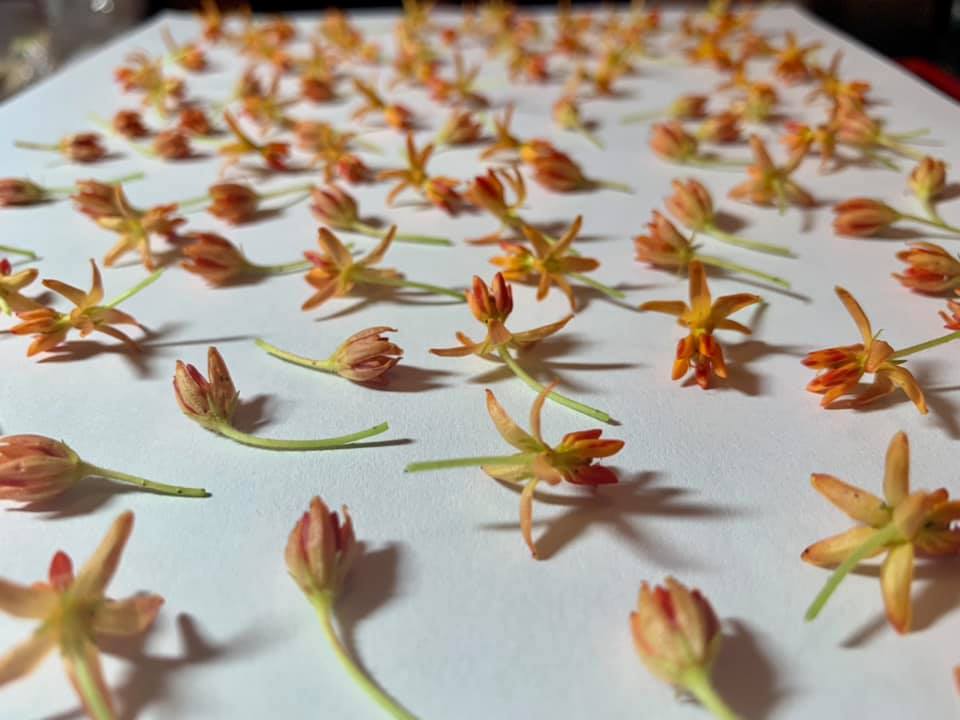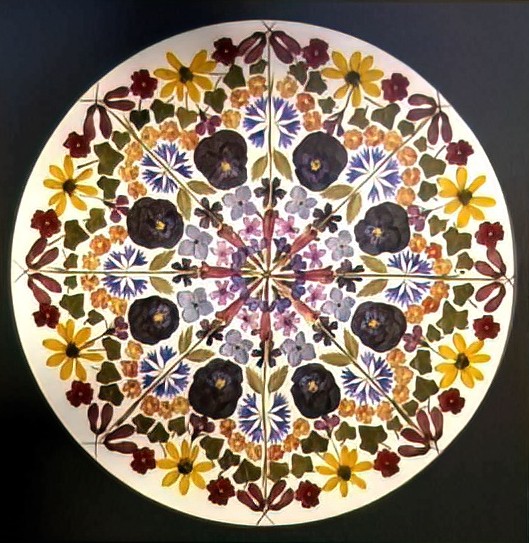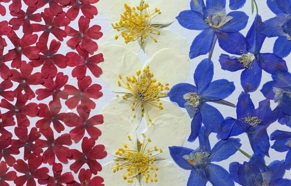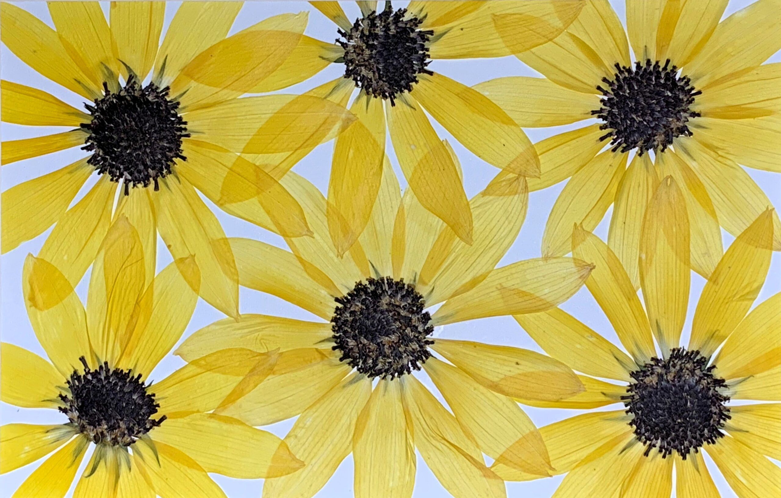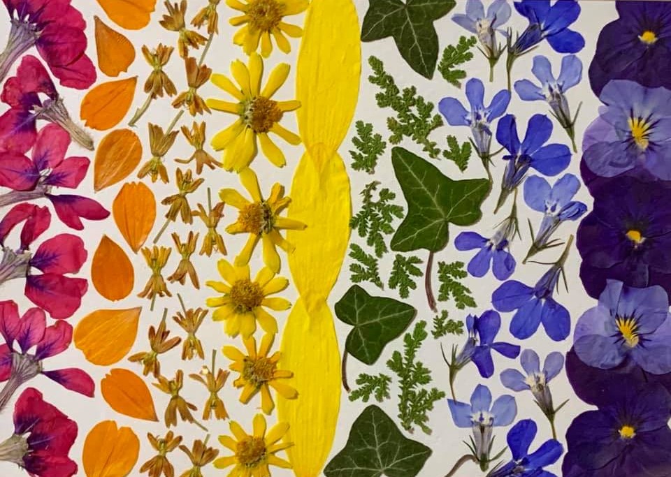 Kelly grows and presses her own flowers. She has developed a flower pressing and framing process that maximizes color retention. The botanical colors you see here are 100% natural.